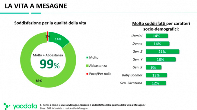 C’è un altro dato che va sottolineato e che poi si lega direttamente a quello relativo al sindaco: l’87 per cento dei mesagnesi sono soddisfatti per l’operato dell’Amministrazione comunale e tra questi quasi la totalità dei giovanissimi: la Generatione Z la gradisce al 98%. Quella stessa platea di ventenni che rappresenta quasi la metà della quota di fiducia espressa poi a Matarrelli.