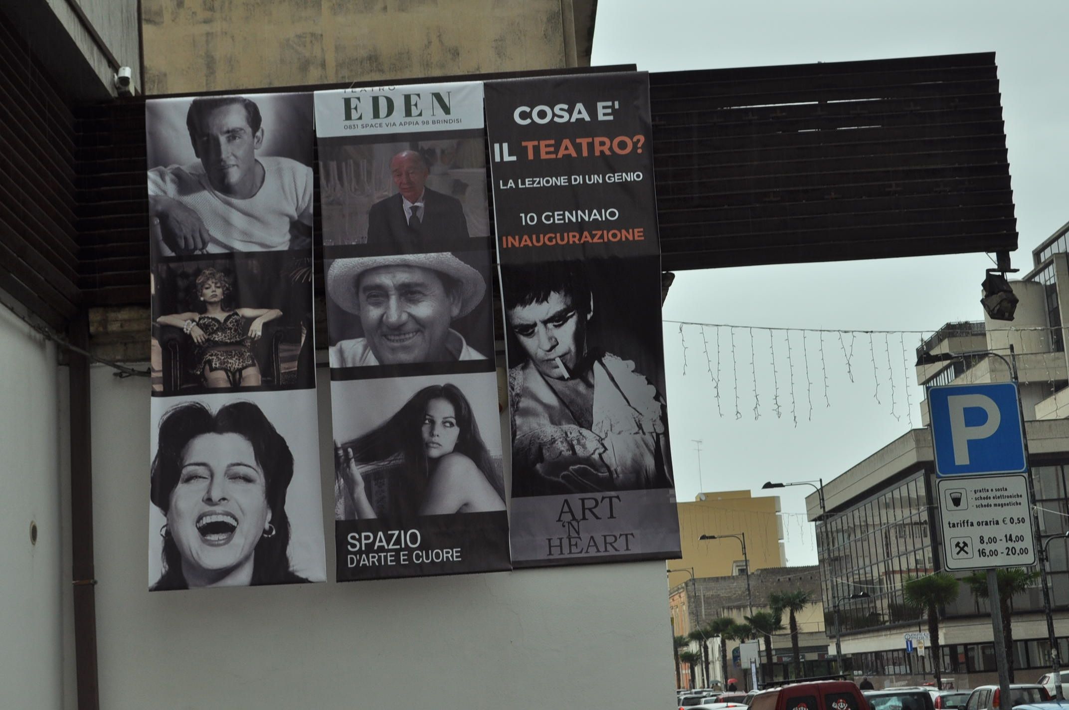 Presso il Teatro Eden di Brindisi, diretto dall’attore e regista Maurizio Ciccolella e inaugurato lo scorso gennaio, è programmata la rassegna di spettacoli ed eventi dal vivo “Art’n Heart”, che gode del patrocinio della Regione Puglia, del Teatro Pubblico Pugliese e della Fondazione Nuovo Teatro Verdi. Una stagione che punta alla promozione culturale per offrire al territorio un punto di aggregazione, sperimentazione, formazione. #‎Vienidovetiportailcuore lo slogan di questa nuova avventura che punta a recuperare un pezzo e un contenitore di storia in controtendenza alla chiusura dei cinema e dei luoghi di cultura. In quest’ottica arriva al Teatro Eden un film d’autore, con la presentazione dello stesso regista, presente in sala. Interpretato da Luca Lionello (La Passione di Cristo) e con la partecipazione di attori del calibro di Alessandro Haber; Michelangelo Pistoletto e Franco Nero. Una produzione  di Giuseppe Lepore (produttore associato di “Non essere cattivo” di C. Galigari), che ha creduto e crede in questo talento nascente del cinema. Sarà distribuito dalla giovane società indipendente “Imago Distribution”.