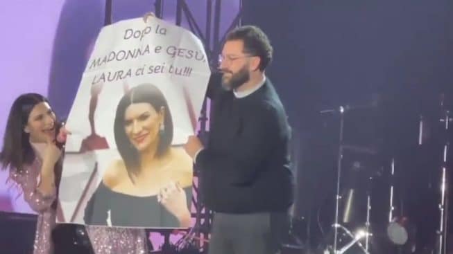 “Dopo la Madonna e Gesù… Laura ci sei tu!!!”: c’era scritto questo sul cartellone che un giovane fan agitava ieri sera al PalaFlorio di Bari, durante il primo dei due concerti pugliesi celebrativi dei trent’anni di carriera di Laura Pausini. Così la star, incuriosita da quelle parole, ha invitato sul palcoscenico il suo ammiratore per ringraziarlo personalmente dell’onore tributatole… scoprendo che l’autore del messaggio era don Piero D’Alba, sacerdote di Bisceglie, suo grande appassionato da quando ancora Dio non era nei suoi piani. Così la cantante ha deciso di ricambiare la stima di don Piero intonando insieme a lui il canto liturgico Servo per amore, di norma eseguito durante le celebrazioni eucaristiche al momento della questua. Il risultato? Pubblico in visibilio e sacerdote grato per il miracolo. Stasera il secondo dei concerti.