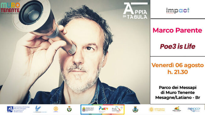 Un poeta punk divenuto uno dei cantautori più importanti della musica indipendente italiana: Marco Parente sarà protagonista di “Poe3 is life”, lo spettacolo in programma venerdì 6 agosto (start ore 21.30) nel Parco Archeologico di Muro Tenente, ottavo appuntamento in cartellone nella rassegna “Appia in tabula”.