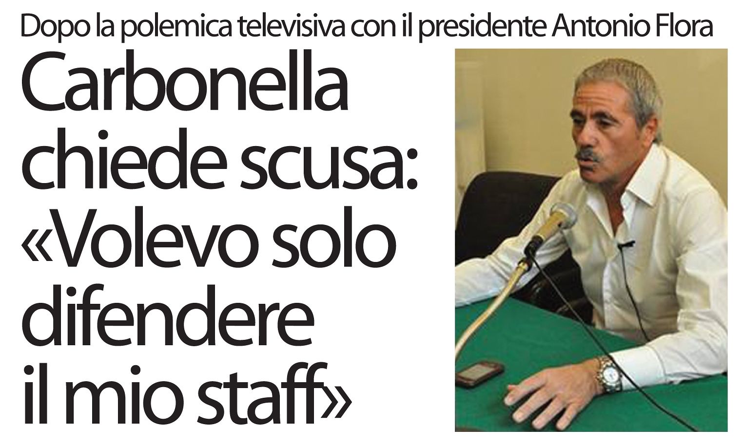Carbonella ha esordito chiedendo scusa per i modi ed i toni utilizzati in quell’occasione ed ha chiarito che il suo intento era esclusivamente quello di difendere a spada tratta l’operato dello staff di collaboratori che in estate, pur senza disporre di un budget importante, è riuscito nondimeno a creare la squadra che tanto bene si sta comportando in campionato e fra gli amici con cui stava vedendo la trasmissione c’erano mister Ciullo ed il consulente di mercato Palomba. Da qui la foga eccessiva nella telefonata fatta per evitare che le reazioni alle esternazioni del presidente riguardo l’inutilità e dispendiosità dei procuratori nel mercato di serie D potessero scatenare un processo a catena che portasse alla disgregazione dell’attuale gruppo.