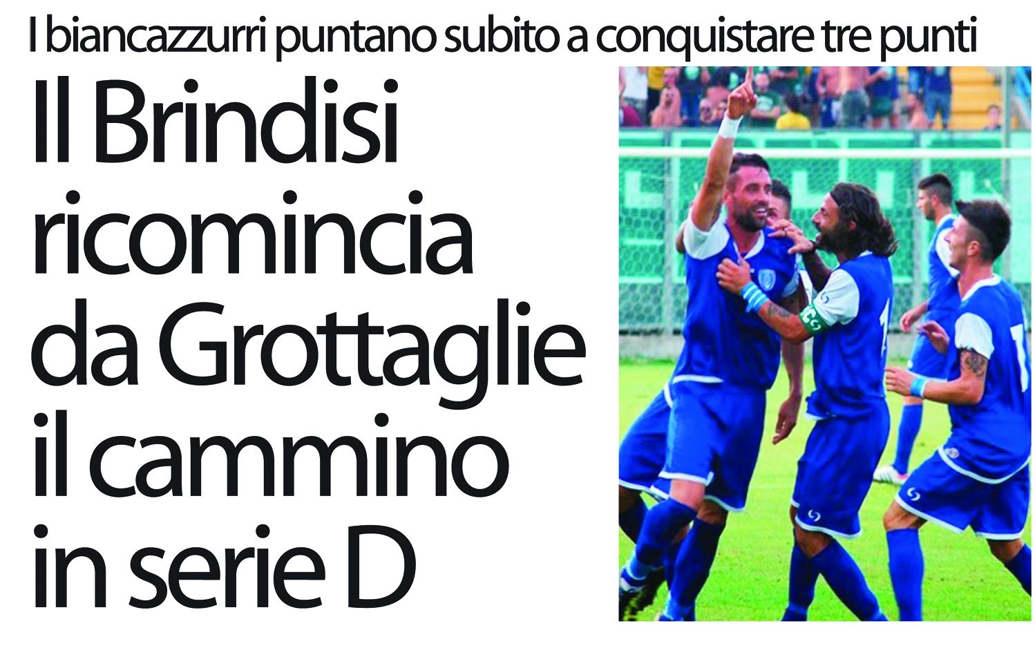 Ci occupiamo, innanzi tutto, della gara che vedrà impegnato il Brindisi in trasferta, sia pure a pochi chilometri da casa, contro il Grottaglie, fresco di ripescaggio dopo la retrocessione diretta maturata al termine dello scorso campionato e che solo due settimane fa, sotto le direttive di mister Bosco, un tecnico giovane, preparato e motivato, ha cominciato ad assemblare la squadra con cui tenterà di raggiungere una non semplice salvezza. Il Brindisi è fortemente intenzionato a conquistare l’intera posta in palio anche per recuperare quell’antipatico gap di -1 in classifica da cui è costretto a partire per la sanzione irrogatagli dalla Commissione Accordi Economici a seguito della vertenza promossa da Claudio Miale – l’unica delle otto vertenze promosse dai calciatori che vestirono la maglia con la V due anni addietro a cui la società del neopresidente Antonio Flora non ha fatto in tempo a porre rimedio – un calciatore venuto a sbarcare il lunario a Brindisi e che probabilmente verrà ricordato dagli sportivi brindisini non per quel poco che ha fatto vedere in campo ma solamente per la penalizzazione in classifica. Gli occhi dei tifosi biancazzurri saranno tutti puntati sul bomber Giuseppe Gambino, autore di una splendida doppietta ai danni del Monopoli nella gara di Coppa Italia di domenica scorsa
