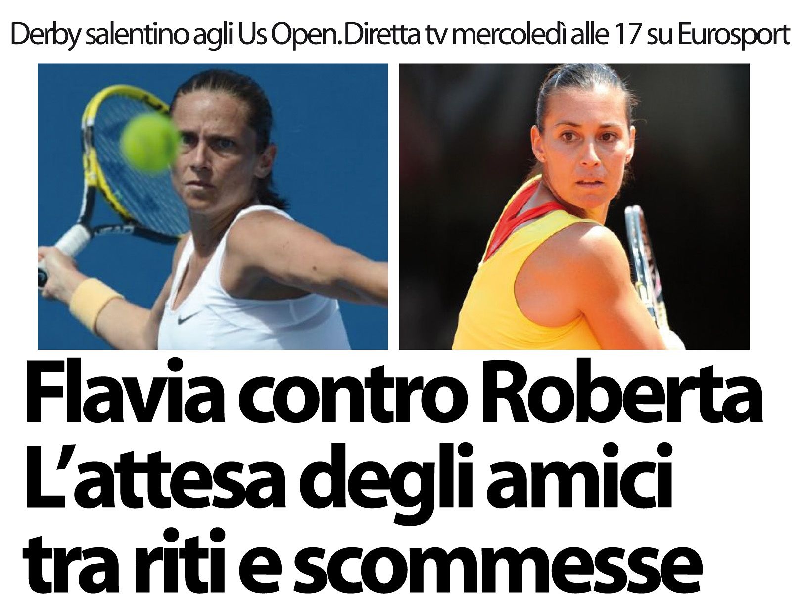 Ventiquattr’ore e poi Brindisi e Taranto si sfideranno a colpi di racchetta: la brindisina Flavia Pennetta contro la tarantina Roberta Vinci sono le protagoniste nei quarti di finale dell’Us Open 2013 di New York. Il derby tutto azzurro, ma soprattutto pugliese, sarà trasmesso in diretta tv domani, mercoledì 4 alle 17 (ora italiana) da Eurosport.