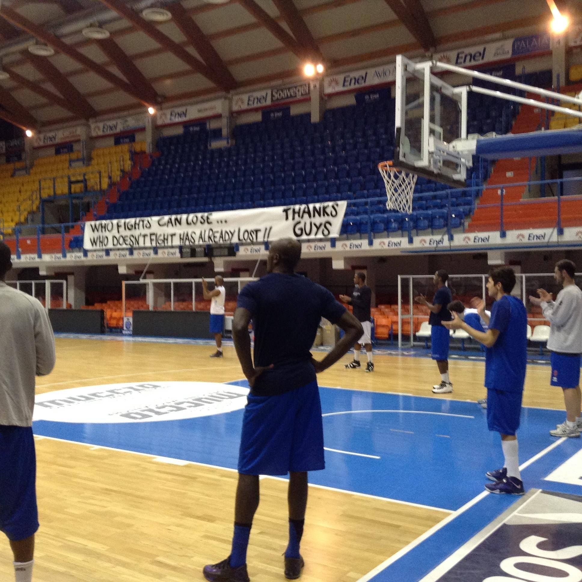 tutti gli appassionati della Puglia, li hanno accolti esponendo due striscioni per ringraziare dell’impegno della squadra nel Forum di Assago, nonché per incoraggiarla per il prosieguo del campionato.