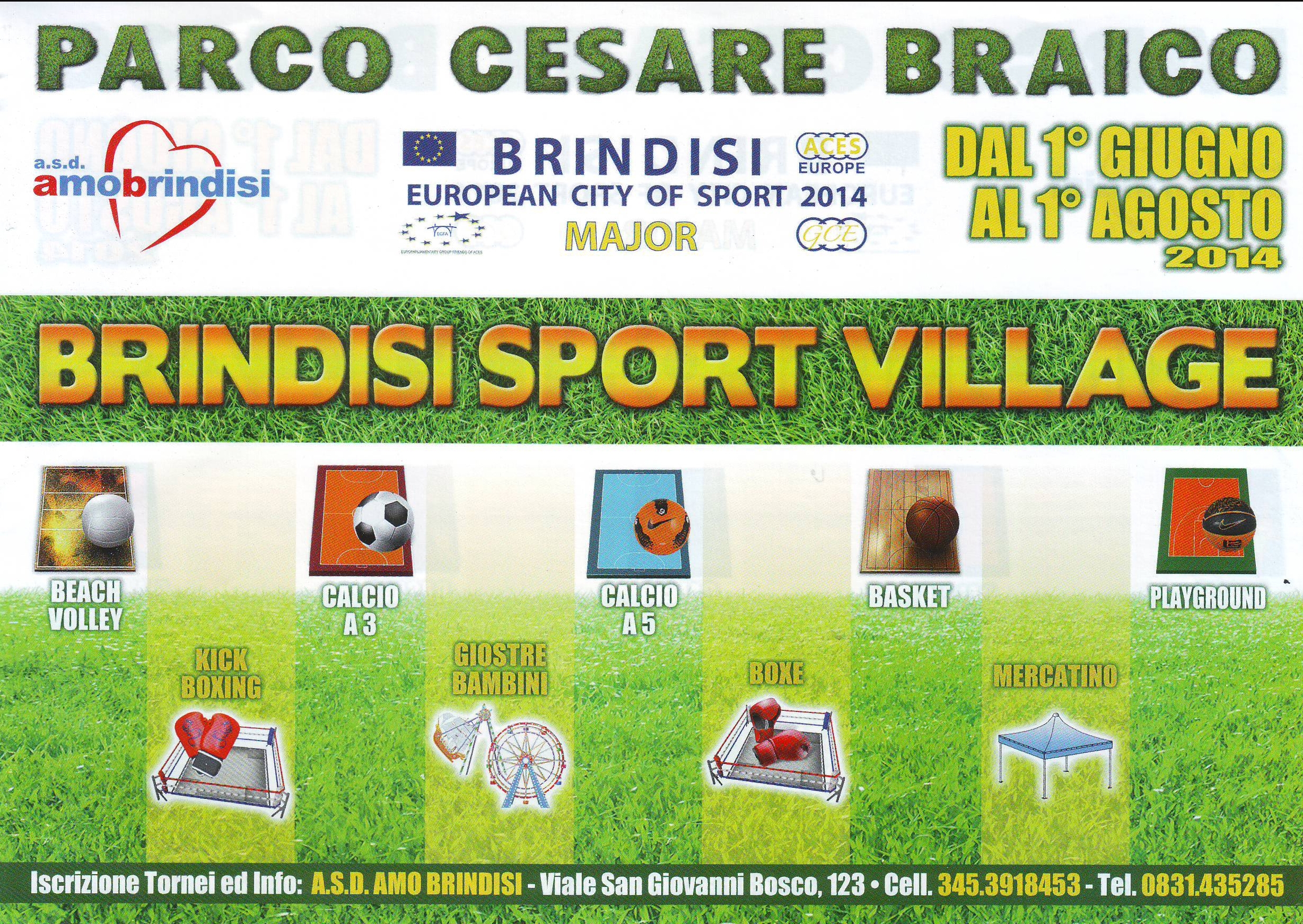 Per due mesi il parco “Braico” si trasforma nel “Brindisi Sport Village”, un complesso sportivo realizzato nell’ambito delle manifestazioni organizzate dall’Amministrazione comunale nell’ambito delle iniziative per Città Europea dello Sport 2014.