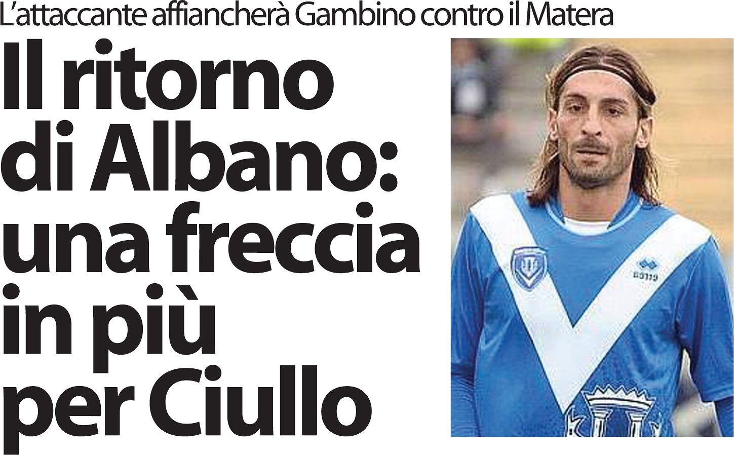 La società biancazzurra ha ufficializzato nel pomeriggio di oggi la notizia già da noi anticipata nella serata di ieri, cioè il ritorno di Diego Albano nel Brindisi; il forte attaccante trentaquattrenne, che nella stagione 2003/04 fu la spalla ideale di Mino Francioso nel Brindisi Calcio che sfiorò la promozione in C1, riuscendo a metterla nel sacco per ben 12 volte e che lo scorso anno, con 11 reti, è stato il cannoniere più prolifico del Città di Brindisi di mister Francioso prima e mister Ciullo poi, giocherà anche in questa stagione con la formazione messapica e dividerà gli oneri e gli onori del reparto avanzato con il capitano Mino Tedesco, con il bomber Giuseppe Gambino e con il giovane Beppe Fella.
