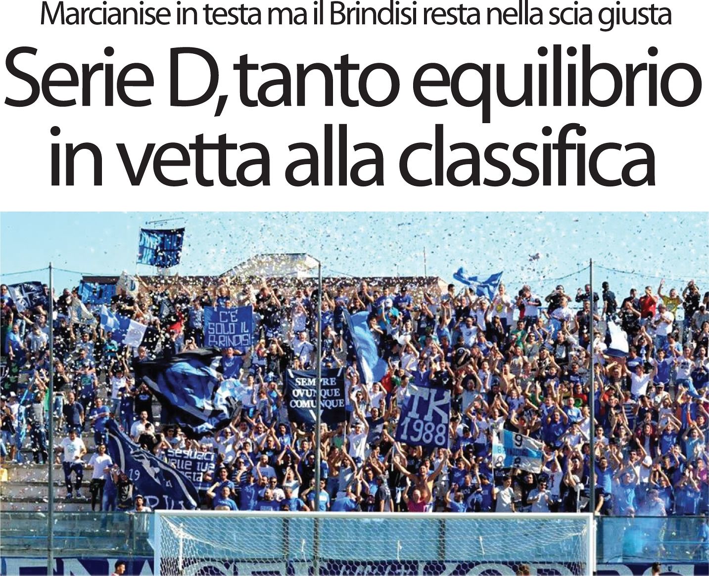 Risultati all’insegna del massimo equilibrio in testa al del girone H della serie D: nessuna delle prime cinque in classifica, infatti, ha conseguito il risultato pieno a ulteriore dimostrazione di ciò che andiamo dicendo fin dall’inizio del torneo e che, cioè, non vi alcuna supercorazzata del genere dell’Ischia dello scorso campionato ma solo un gruppetto di buone squadre, fra cui anche il Brindisi, che si contenderanno fino alla fine l’ambitissimo primo posto, l’unico che da la certezza del passaggio fra i professionisti, e le migliori posizioni nella griglia play off.