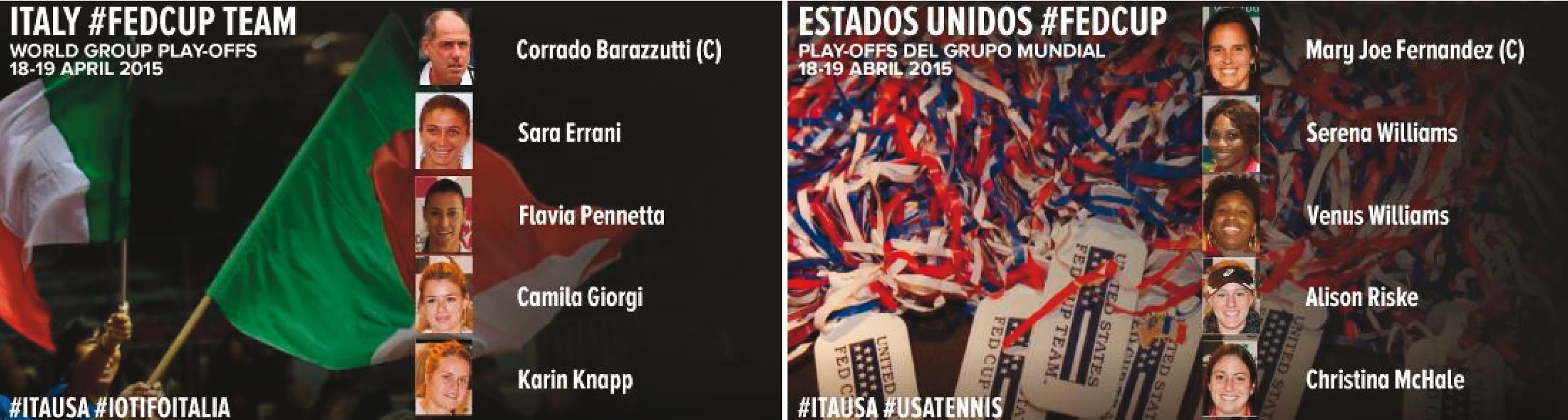 Non ci sarà dunque Roberta Vinci, bloccata da un problema fisico manifestatosi al torneo di Miami dove è stata eliminata al primo turno dalla qualificata tedesca Tatjana Maria. La tarantina soffre di una infiammazione alla zona epitrocleare del gomito destro. “Sono molto dispiaciuto per Roberta – ha sottolineato Barazzutti – purtroppo non è in grado di rispondere alla convocazione a causa di un infortunio dal quale sta recuperando. Tornerà in maglia azzurra per la prossima sfida”.