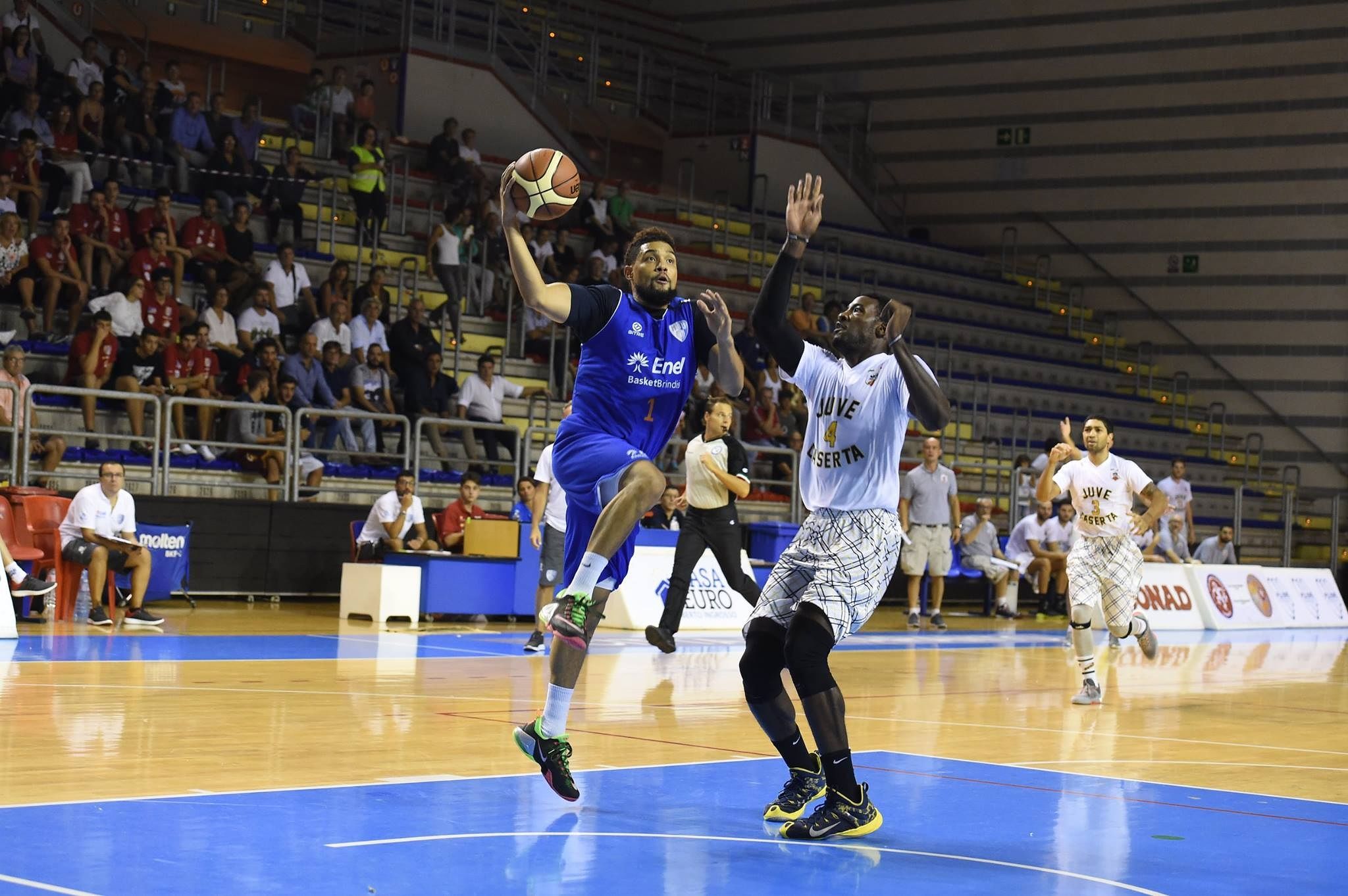 Enel Brindisi: Banks 2, Reynolds 10, Scott 6, Cournooh 5, Harris 13, Cardillo 5, Milosevic 2, Gagic 6, De Gennaro ne, Marzaioli ne, Kadji 11. All: Bucchi.