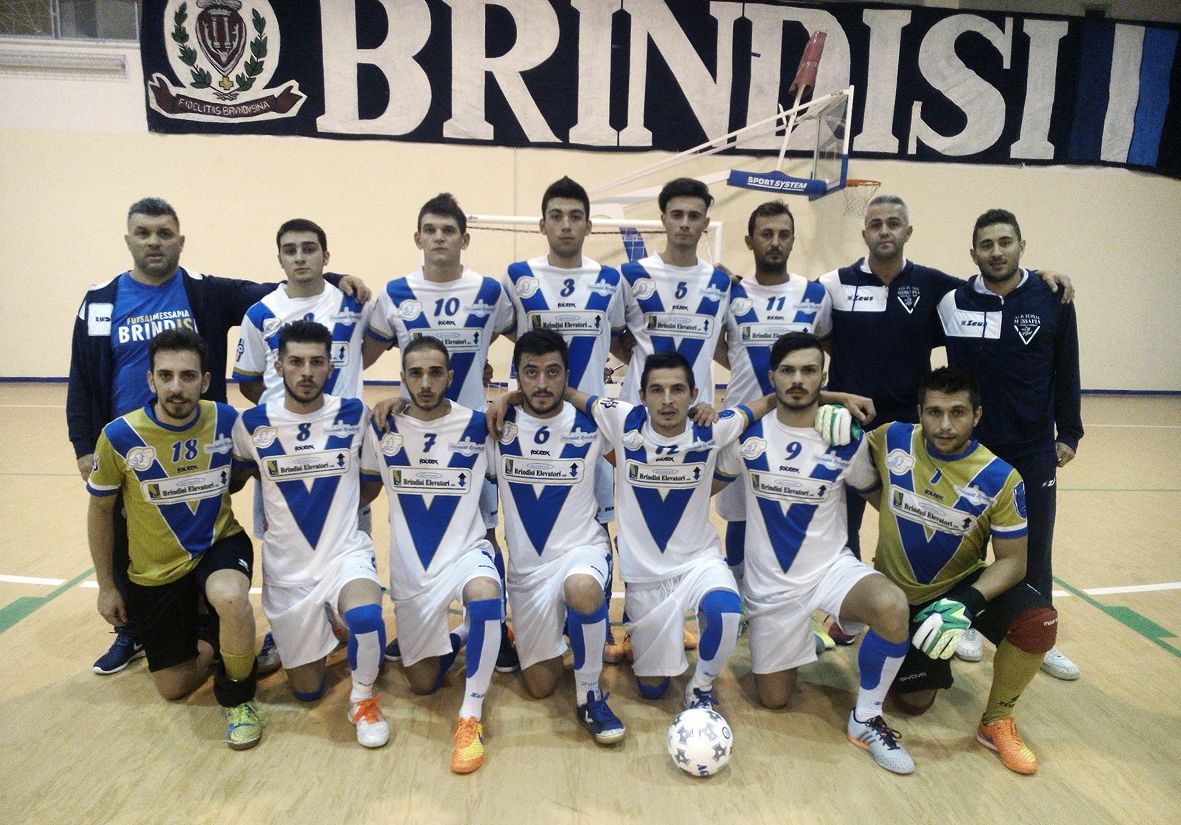 Futsal Messapia Brindisi 1 Grande (p), 2 Petrachi, 3 Micia, 5 Conte, 6 Zaccaria A. (cap.), 7 Spagnolo, 8 Caselli, 9 Paciullo, 10 Tomassini, 11 Romano, 12 Perseo, 18 Putignano (p). All. Di Serio C.. Dir. Di Serio D.. Marcatori: Romano e Spagnolo. Ammonito: Grande.