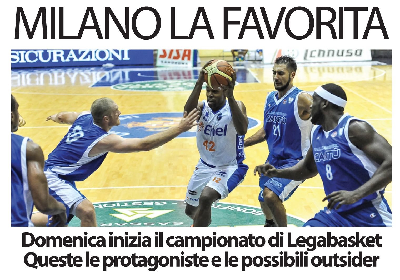 7. ENEL BASKET BRINDISI Roster rinnovato, si riparte dalla certezza in panchina, coach Bucchi.il precampionato ha dimostrato che la squadra c’è e il gioco anche. Possibile sorpresa. Q.B:DYSON,LEWIS,SNAER,JAMES,AMINU.