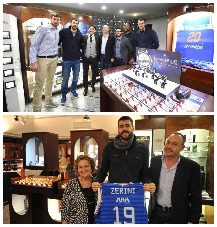 L’Enel Basket Brindisi ha presentato Maison d’Horlogerie Eberhard & Co quale nuovo sponsor per la stagione sportiva 2015/16. L’importante partnership è stata presentata ufficialmente ieri sera presso la gioielleria Cisternino Preziosi di Brindisi in un cocktail al quale hanno partecipato giocatori, staff tecnico, dirigenti e numerosi ospiti. Nelle foto dello studio Tasco alcuni momenti della bella serata allietata dalla violinista Kiara Conte e nella quale sono stati degustati prodotti e vini tipici locali. Con tale iniziativa, promossa e voluta fortemente dalla famiglia Cisternino, si intende dare il via ad un progetto dinamico di collaborazione tra la prestigiosa fabbrica di orologi svizzera e l’Enel Basket Brindisi. Per Maison d’Horlogerie Eberhard & Co ha partecipato alla serata l’area manager Gianmarco Amodio, il quale insieme a Fabrizio Cisternino ha presentato agli ospiti e alla stampa i dettagli del progetto di partnership e svelato l’orologio ‘Champion’ di Eberhard che verrà donato nel prepartita di Enel Brindisi – GTG Pistoia (17 gennaio 2016) all’”MVP Eberhard del girone di andata” scelto direttamente dai tifosi tramite un’apposita sezione nell’home page del sito newbasketbrindisi.it
