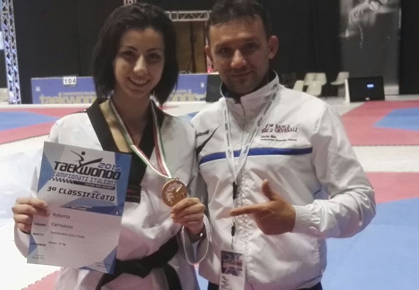 Ancora una medaglia nazionale per il taekwondo brindisino con Roberta Carruezzo della società sportiva Taekwondo Gold Team Brindisi del Maestro Marco Cazzato. Soddisfazioni e rammarichi per questo ennesimo week end di sport ,lo scorso sabato 12 e domenica 13 dicembre nella città di Riccione si sono svolti i campionati italiani Seniores di Taekwondo , l’appuntamento nazionale più importante ed atteso da tutti i praticanti. Roberta Carruezzo, diciassette anni conquista al suo primo esordio tra i senior una splendida medaglia di Bronzo dimostrando grandi doti e carattere, vince bene gli ottavi ed i quarti di finale , si arrende purtroppo in semifinale con la brava atleta delle fiamme oro,disputa a questo punto il ripescaggio approdando alla finale per il terzo posto vincendo per ko e conquistando così il suo primo bronzo nazionale classe senior.