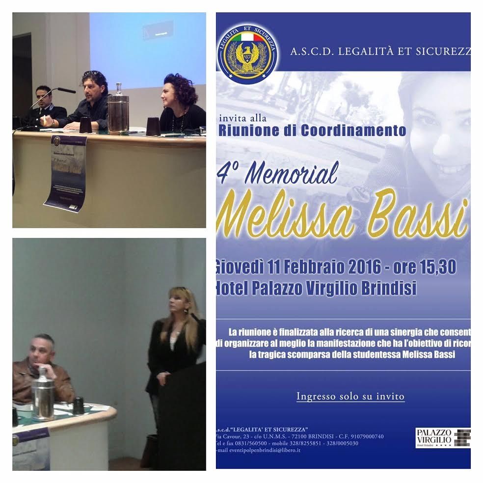 La quarta edizione del memorial “Melissa Bassi” ha mosso i primi passi con la riunione di coordinamento svoltasi giovedì sera in un albergo cittadino. All’incontro, coordinato dalla giornalista Lorella Livieri, hanno partecipato oltre agli organizzatori dell’associazione “Legalità e sicurezza”, anche referenti sportivi ed enti, insieme ai genitori di Melissa, per decidere le modalità di svolgimento del torneo, della raccolta fondi e relativa destinazione.