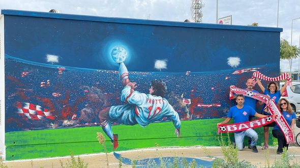 L’iniziativa porta la firma di Retake Bari, l’associazione di volontari che da anni lavora per riqualificare gli spazi urbani attraverso arte, pulizia e progetti di rigenerazione. Con pennellate e colori, il gruppo ha voluto rendere omaggio a colui che ancora adesso viene considerato un simbolo della squadra, ma anche esprimere vicinanza all’ex giocatore, che ha coraggiosamente scelto di condividere con i suoi follower il percorso di cure, aggiornandoli periodicamente sulle proprie condizioni di salute.