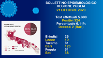 CRONACA / 21 Ottobre 2020 Covid, 21 ottobre: 26 casi in provincia di Brindisi. In Puglia 324 positivi (6,11%) Oggi mercoledì 21 ottobre 2020 in Puglia, sono stati registrati 5.300 test per l'infezione da Covid-19 corona... Di sebrindisi